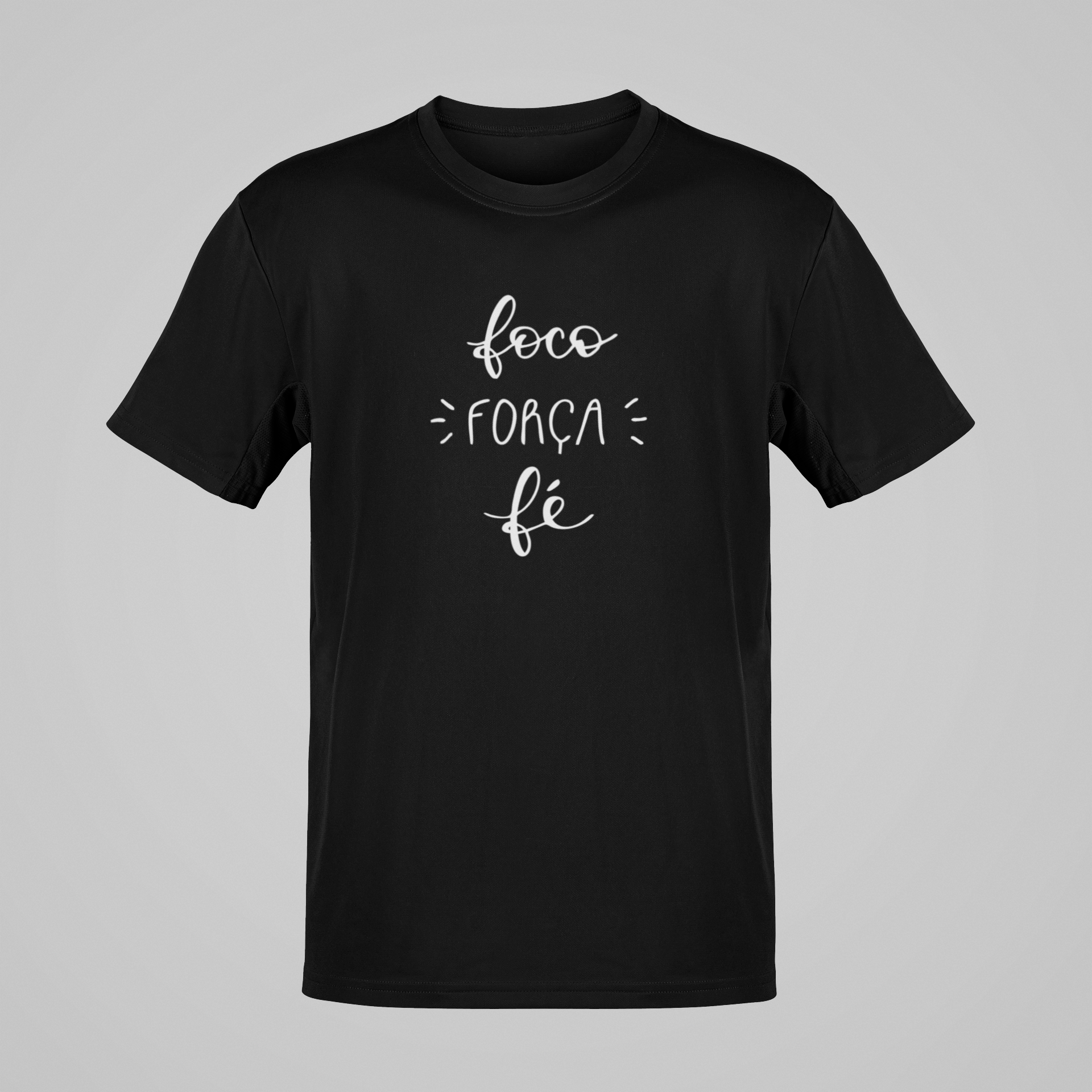 Camiseta Regular - Foco Força Fé - Preta com detalhes brancos